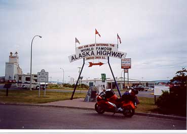 Make it into Dawson Creek and simply have to take a picture of the bike in front of the "Start of the Alaska Highway" sign. Of course it's a no parking area but that doesn't stop me. I cruise through Dawson Creek on my way toward Fort St. John. Nothing of note really stands out about this leg other than the fact that I'm on the Alcan and headed toward those remote towns that all have Fort in their names. At Fort St. John I decide to top off. Looks like Pink Mountain will be my next stop and it's a pretty good distance. Certainly do not want to be cavalier about your bikes range in this area. You could find yourself in for a pretty good walk.